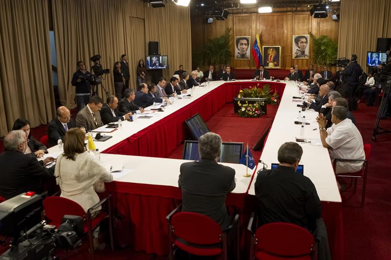 Durante seis horas, en cadena obligatoria de radio y televisión y con la presencia de tres cancilleres de la Unión de Naciones Suramericanas (Unasur) y del nuncio del Vaticano en Caracas, Gobierno y oposición llevaron a la mesa de discusión el tratamiento de las protestas que se desarrollan desde hace dos meses.