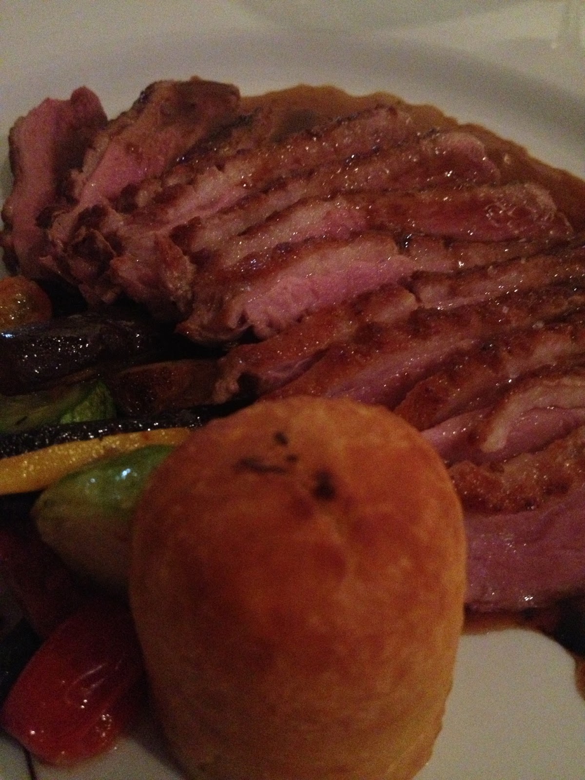 El Chardonnay se iba evaporando lentamente de mi copa cuando llego mi plato; Pechuga de Pato con Yuca empanada rellena de confitura de muslo de pato con una salsa agridulce de Malbec. Se que Gonzalo Pagés (@zooedipo) va a entenderme; el plato era pasional al 100%, una locura, realmente pornográfico, hacia mucho tiempo que no comía tan bien.