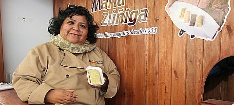 Más que un restaurante, el negocio de la peruana María Zúñiga es un hueco abierto en una de las casitas del poblado instalado en el corazón del Parque de la Amistad. Un mostrador, la caja, la vieja carretilla tamalera de María, espacio para una mesa como mucho, una pizarra junto a la entrada anunciando los platos que se sirven cada día y otra, colgada de la puerta, destacando algunos platos especiales.